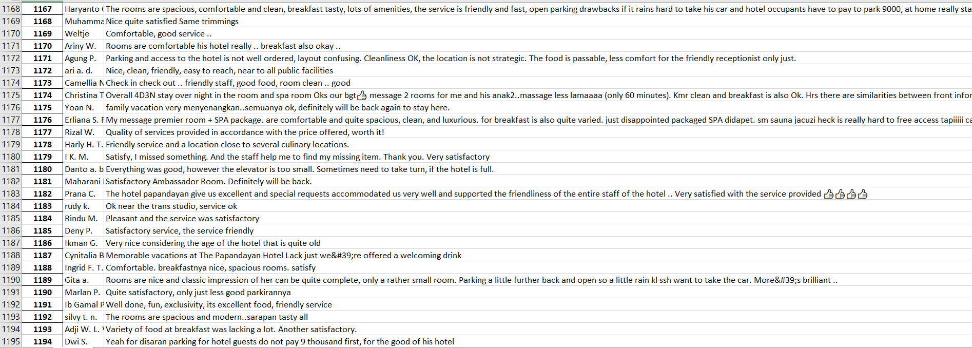 Aside from numeric rating, the textual reviews are important to evaluate as well. The advantage of examining textual review is that it contains better reflection of customer experience and perception toward the service. These reviews have open structure that enable the author to express their opinion without formatting limitations and include each customer's linguistic style that might hint at the overall evaluation of the product